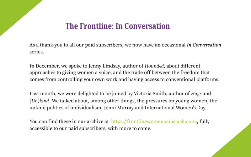 We are delighted that we can now plan for our fortnightly 21st century feminist publication to remain fully accessible. But we depend on some of our readers becoming paid subscribers so that we can pay our contributors, as well as keep the newsletter free so ALL women can access it. If you can afford a paid subscription, please consider getting one.